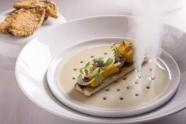 シェフ自ら生産者を訪ねて見つけた食材を使い、感性とアイデアを落とし込んだコンテンポラリーイタリアン。皿の下にドライアイスを仕掛けた『鰻のエスカベッシュ ポルチーニ茸 オニオンのピクルス 木の芽 ロースト南瓜のクリーム』など、見た目も華やかな料理が並びます。