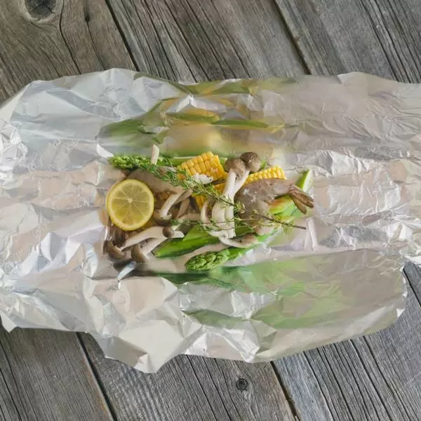 材料は適当な大きさにカットしておく。好みの具材をアルミホイルにのせ、塩・胡椒、白ワインで味付けをして包み、しっかりと口をする。