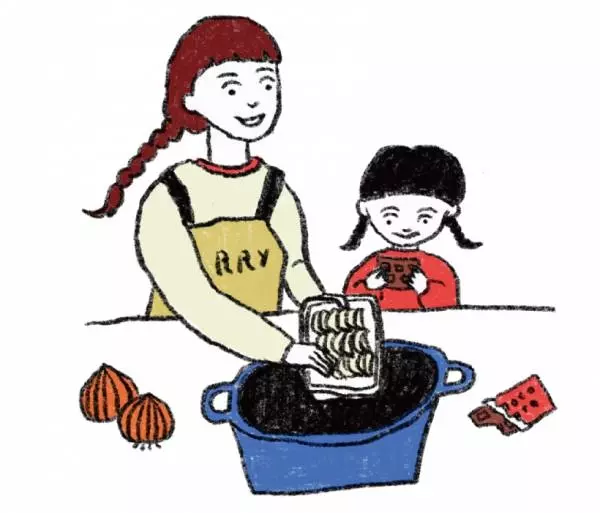 ●とにかくタマネギをたくさん入れます。2、3個入れてじっくり炒めます。わが家はみんな甘口が好きなので、仕上げに小粒のチョコレートを。コクと甘味がアップして子どもたちからも大好評!(石川 恵美さん/8歳女の子のママ)