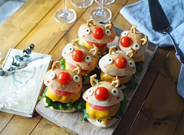 赤鼻がキュートなトナカイバーガー。ほんのり甘い「ディナーロール」とテリヤキハンバーグが好マッチ!