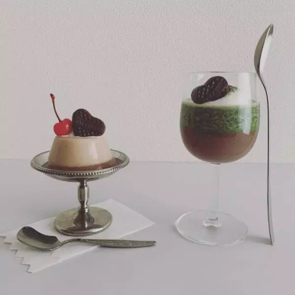 子ども用につくったイチゴチョコプリンのイチゴパウダーを抹茶に代えるだけで、ちょっぴり大人のスイーツに。大人用はワイングラスを使うのもポイント。子どもらしい可愛い見た目のプリンと渋くて大人な味わいの2色プリンをつくって、パパと一緒におうちバレンタインを満喫して♪