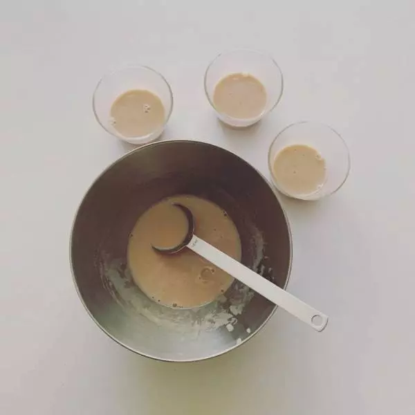 2.プリン液をカップに入れて冷蔵庫で冷やす