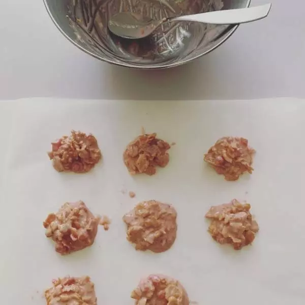 バットなどにクッキングペーパーを敷き、大さじ約1くらいの量を目安にこんもりと形づくり、冷蔵庫で固まるまで冷やす。