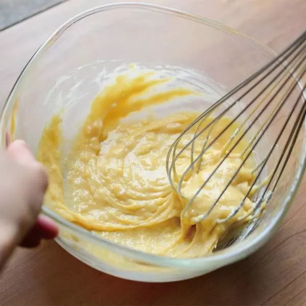 ②①にきび砂糖、卵、米油、豆乳、塩を加え、ホイッパーでよく混ぜる。