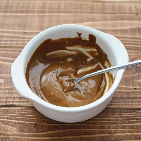 容器に、コーヒー粉と粉糖を入れ、水を少しずつ加えながら混ぜる。少し固めのアイシングになるように水の量は調整しながら。