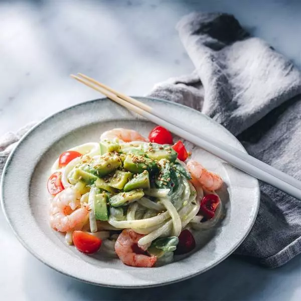 簡単なのにお店クオリティ!冷凍うどんで作る海老とアボカドのクリーミー冷やしうどん