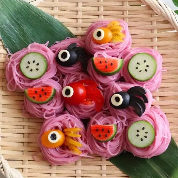 ポイント:色付きのそうめんを使用すると、さらに華やぎ度がアップ!