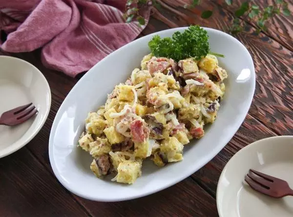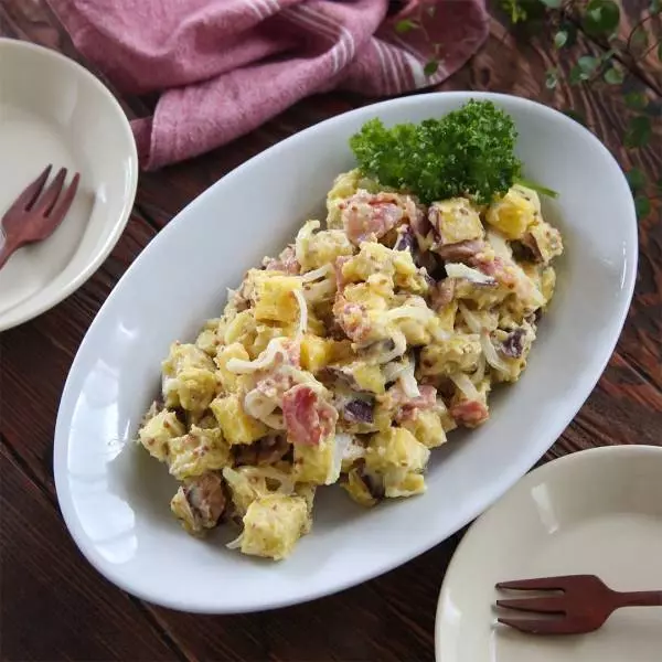 おいも掘りのサツマイモで簡単おかず。子どもが喜ぶ、サツマイモとベーコンのサラダ