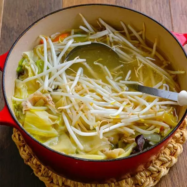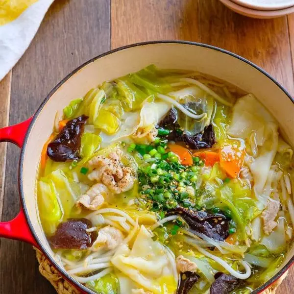 【変わり鍋レシピ】野菜たっぷり! ワンタンの皮入りタンメン風スープ鍋