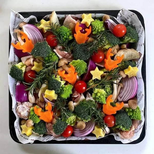 素材のおいしさがぎゅっと詰まった、ぎゅうぎゅう焼きが完成。クリスマスモチーフの型抜き野菜があるだけでテンションUP! 子どももきっと野菜をたくさん食べられるはず。簡単で栄養たっぷりのぎゅうぎゅう焼き、試してみてはいかが?