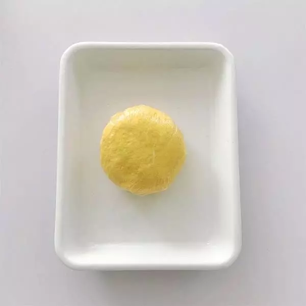 ➁卵に塩を加えて薄焼き卵をつくり、広げたラップに置き、その上にピラフを乗せる。