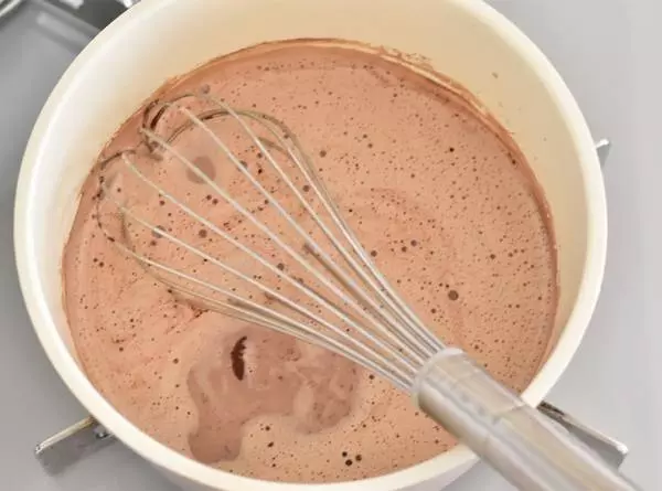 ①鍋に牛乳、砂糖、チョコレート、ココアパウダーを入れて火にかける。