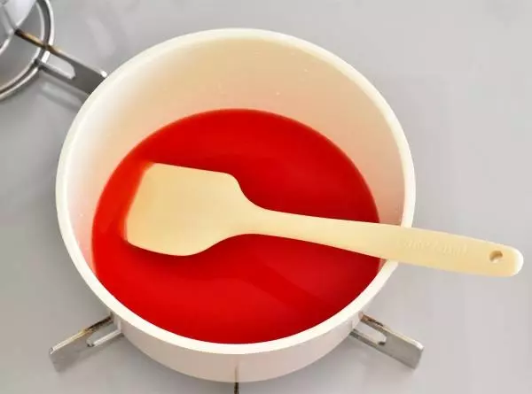 ③スイカシロップをつくる。鍋に果汁(190g)と砂糖を入れて火にかける。