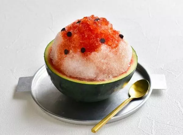 スイカの栄養もたっぷりで、やさしい甘さが嬉しいかき氷。チョコチップの食感も楽しく、あっという間に完食してしまうはず。