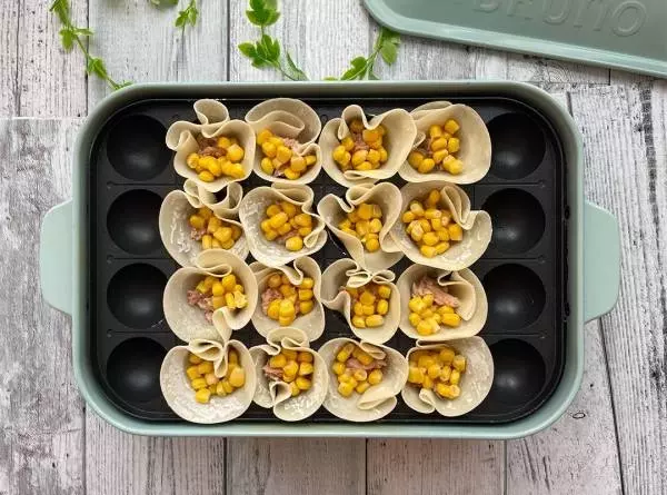 【たこ焼き器が大活躍】餃子の皮でつくる、プチっとツナマヨコーンピザ | HugMug - 親子で楽しむファッションやライフスタイル情報を届けるママメディア