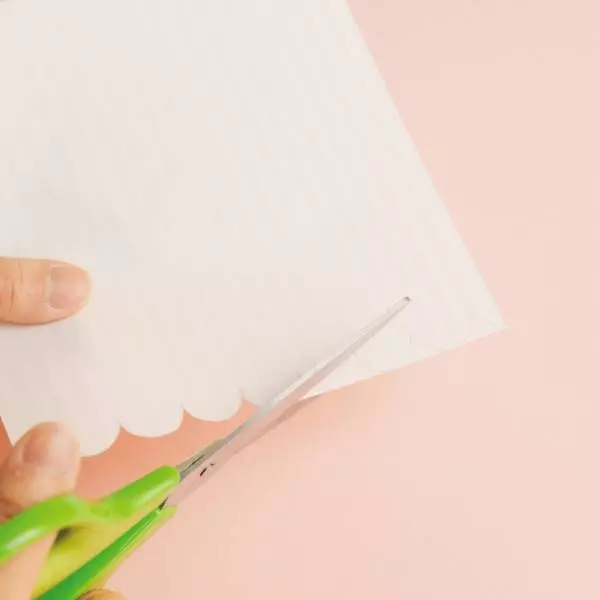 ①折り紙の端をなみなみに切る(ギザギザ、まっすぐなどでもOK)。