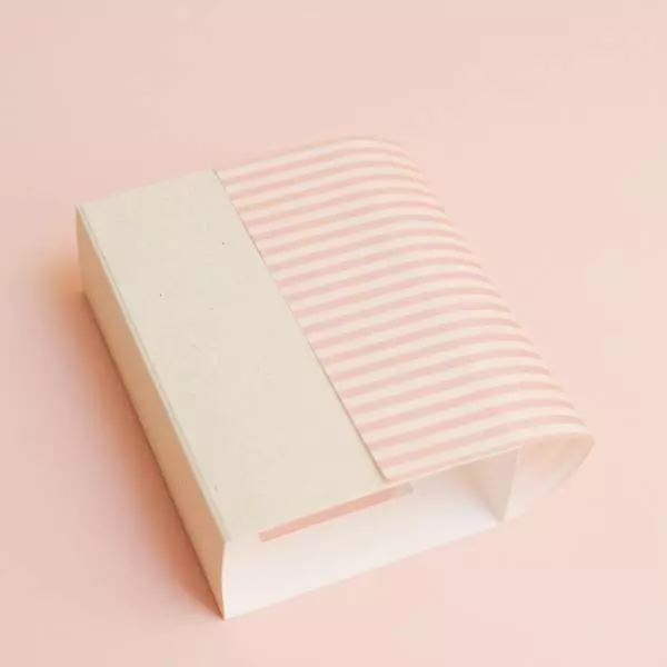 ③ボックスの表と裏の上部に両面テープを貼る。表は折り紙が窓にかかるくらいの位置で貼り付ける。