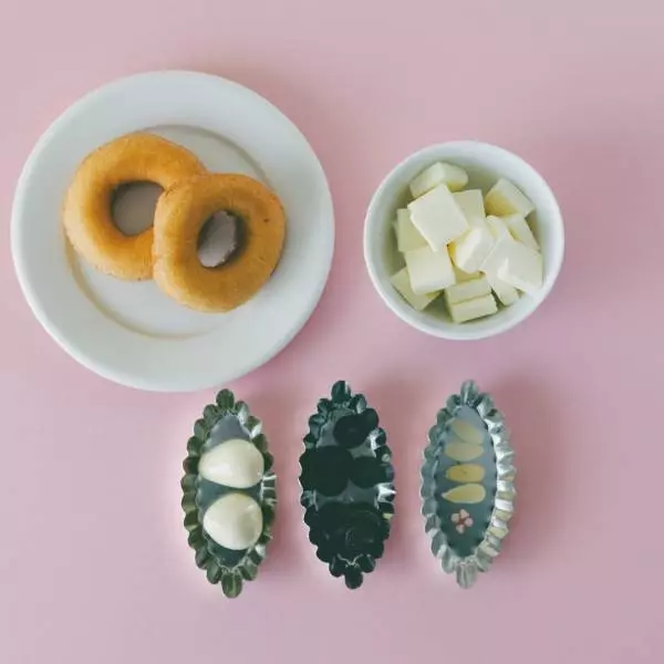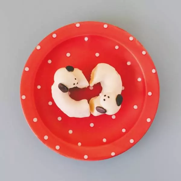 カット部分を工夫した、たれ耳犬のドーナツを2個くっつけると、ハート型になるキュートなチョコドーナツ。市販のドーナツにたっぷりのホワイトチョコをコーティングして、甘さも大満足♪ チョコがけイチゴを顔に見立てたアイディアがユニーク!