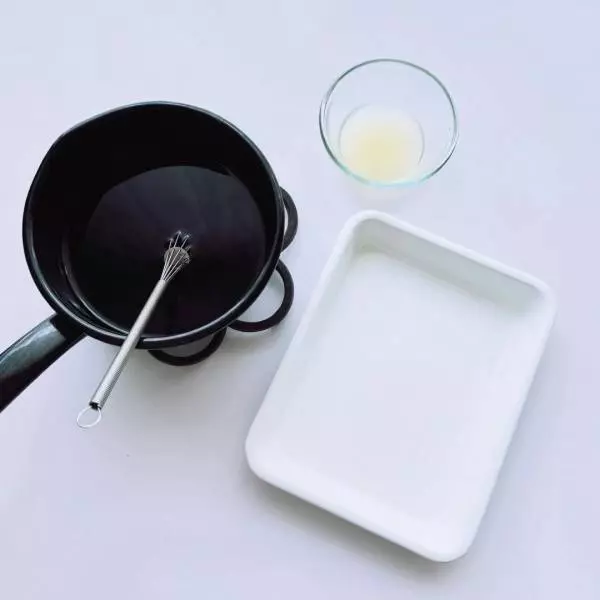 ①ぶどうジュースと砂糖を小鍋に入れて沸騰直前まで温めたら火を止める。