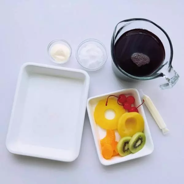 ・お好みのフルーツ……適量※今回は缶詰のパイナップル、みかん、チェリー、黄桃、キウイを使用