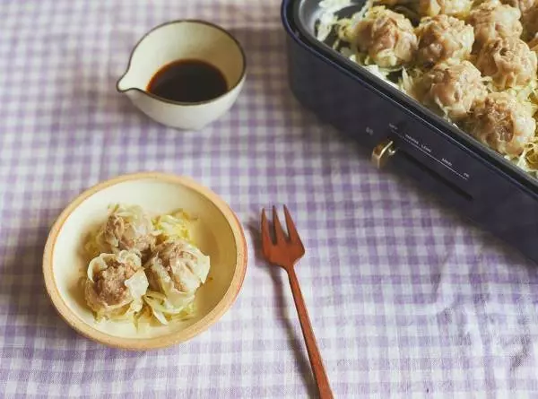 子どもの小さな手にのせたシュウマイの皮に肉ダネを重ね、キュッと手をすぼめるだけでコロンと可愛いサイズの丸型に。千切りにしたキャベツを敷き詰めたプレートに並べて加熱すれば、ふっくらとジューシーに仕上がります。