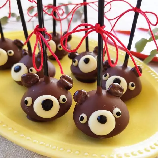 可愛いクマさんがたくさんつくれるケーキポップ。それぞれ個性豊かで、ひょうきんフェイスが愛らしい。[材料・用意するもの] つくりやすい分量