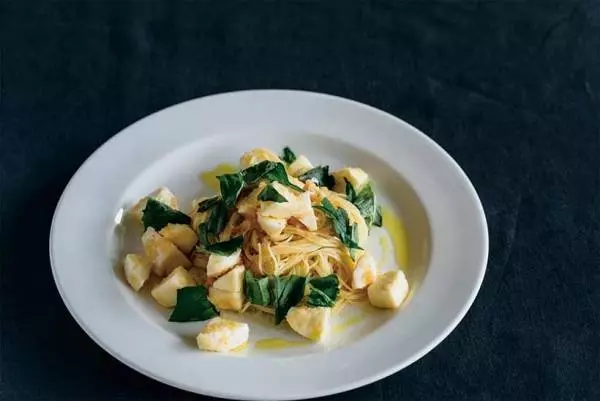 2.鍋に2リットルの水と塩大さじ1(分量外)を入れて沸かした湯で、パスタを袋の表示通りに茹でる。茹で上がったら冷水にさらし、水気をしっかりと切り、さらにペーパーでふく。
