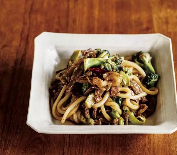 オイスターソースがこっくり香る焼うどん。歯ごたえのあるブロッコリーがアクセント。