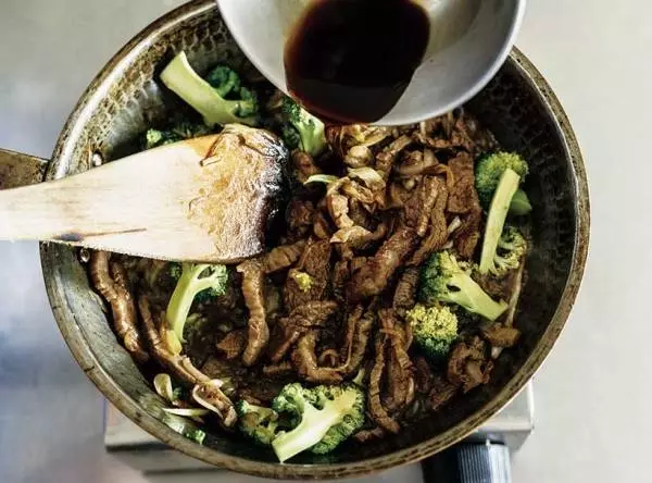 最後にうどんを入れる前に、オイスターソースと醤油で、しっかり味付けをしておく。麺がべちゃっとするのを防ぎ、味に一体感が生まれる。