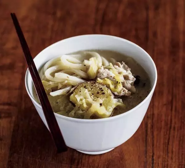 時短レシピ うどん02.豚とサツマイモ豆乳味噌麺