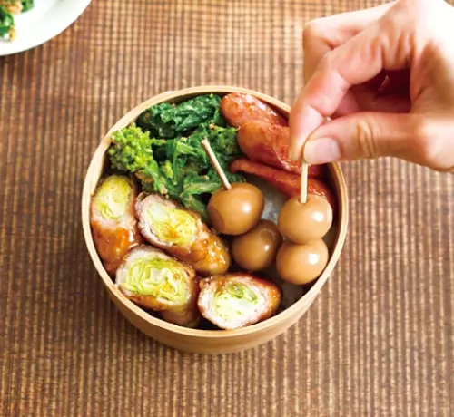 最後、余ったスペースに「うずら卵のめんつゆ煮」を入れる。うずら卵にピックを刺せば、食べやすくなるだけでなく、見た目の可愛さも倍増します!