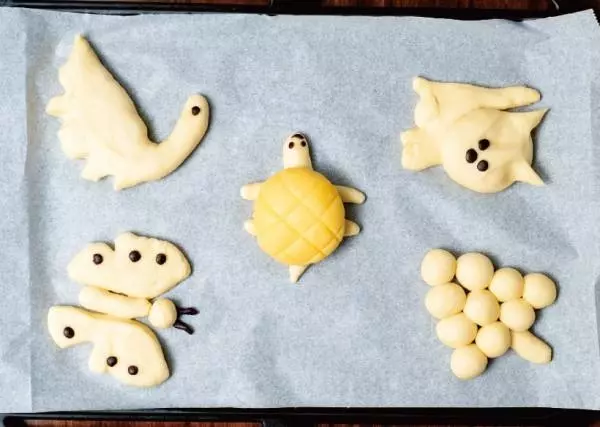 STEP4で5つに分割した生地を使って、それぞれのカタチに成形する。クッキー生地