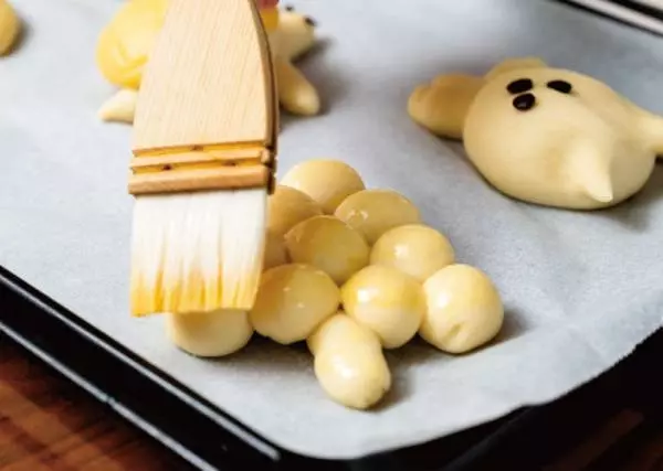 溶き卵(分量外)をハケで、生地表面に塗る。180℃で予熱したオーブンで10分焼く。