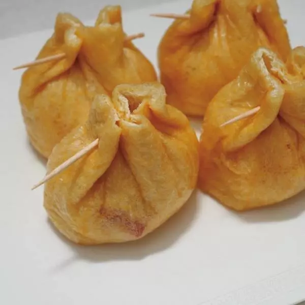 1.油揚げを半分にカットして袋状にする。2.パプリカを星型にくり抜く。