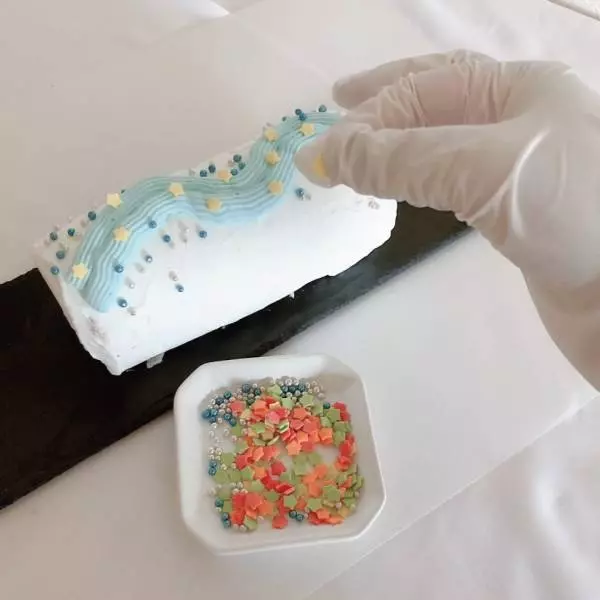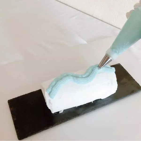 7.青いクリームで波模様を描く