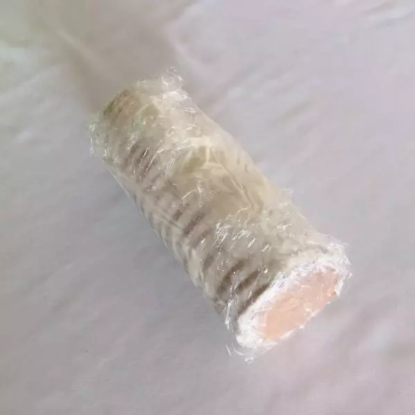 ビスケットがなくなるまで重ねたら、ラップをして3時間以上冷蔵庫で冷やす。