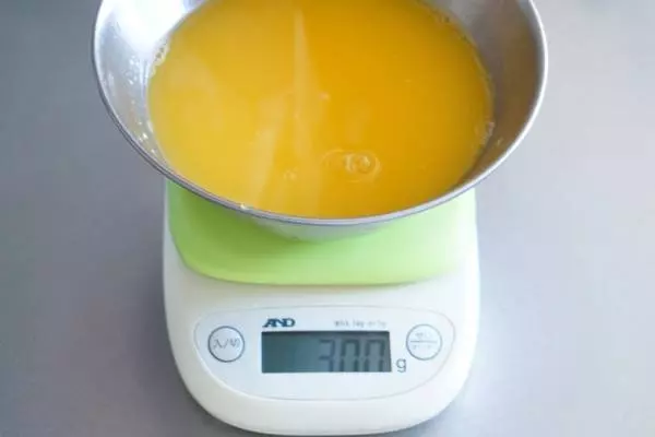 オレンジの絞り汁とオレンジジュースを合わせて300gにする。