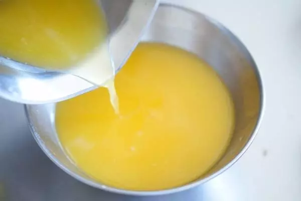 ゼラチンを加えたオレンジジュースを➃に戻して混ぜる。
