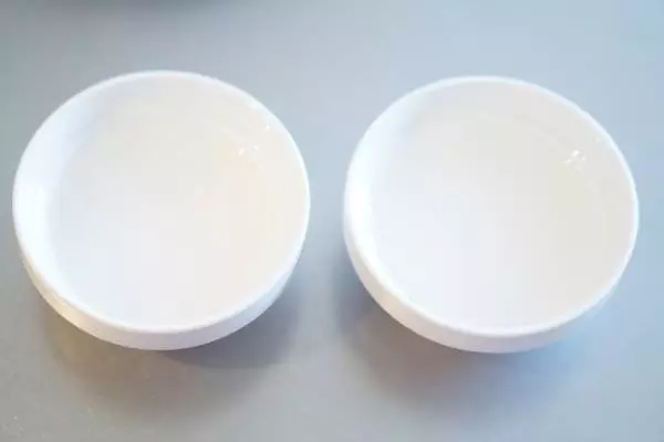 それぞれの材料で使う砂糖と水を耐熱容器に入れて、600Wの電子レンジで20秒加熱する。