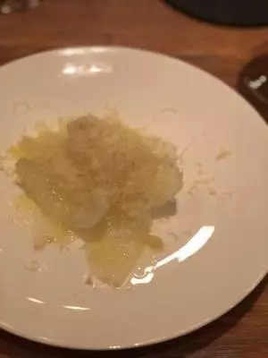 「新玉ねぎの蒸し焼き」は、甘みをしっかりと引き出した新玉ねぎに、12カ月熟成させたコンテチーズをたっぷりかけた温前菜。単品で食べても十分おいしんですが、ふたつを一緒に口に運ぶと、しっとり甘い新玉ねぎとチーズのコク&塩加減の相性抜群。食いしん坊センサーが動いて、最後は焼きたてのパンにはさんでいただきました。