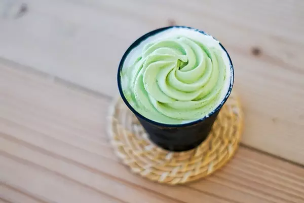 宇治抹茶を使用したミルクプリンの上に、ホイップクリームと抹茶ホイップを盛りつけたスイーツで、少し甘そうな印象を受けますが、実際のところは…?
