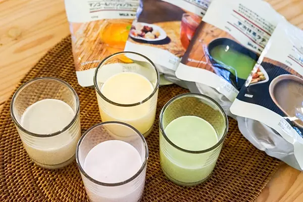 そこでさっそく、ほうじ茶ラテ、宇治抹茶ラテ、アサイー&ざくろ、マンゴー&パッションフルーツの4種類で試してみることに。