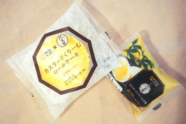 コラボ商品は、「Uchi Café×八天堂カスタードくりーむロールケーキ」(税込210円)と「Uchi Café×八天堂カスタードくりーむ大福」(税込140円)の2つ。名前を見てわかる通り、くりーむパンが人気の八天堂らしく、いずれもカスタードクリームをメインにした商品となっています。