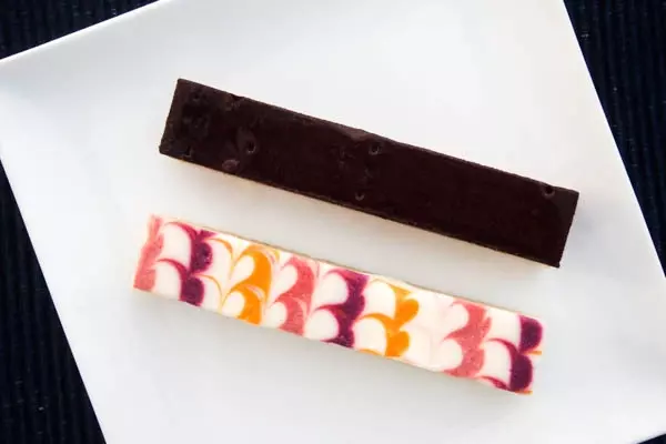 「彩りフルーツソースの白いチーズケーキ」は、サワークリームで爽やかに仕上げたチーズ生地に、3種類のフルーツソースをかけて焼き上げたもの。「スティックケーキ なめらかチョコ」は、クッキー生地に北海道産生クリーム入りのチョコレートを合わせた一品です。