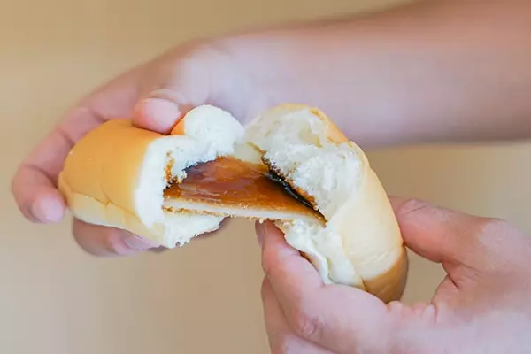 そんな同商品が、2018年8月21日(火)より、新商品としてお値段そのままで復活!昨年と同じように、ふわふわのコッペパンのなかには、黒みつときなこクリーム、そしてぎゅうひがサンドされています。