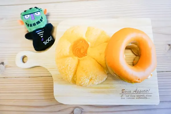 「かぼちゃクリームパン」と「もっちりとしたドーナツサンド(パンプキン&ホイップ)」