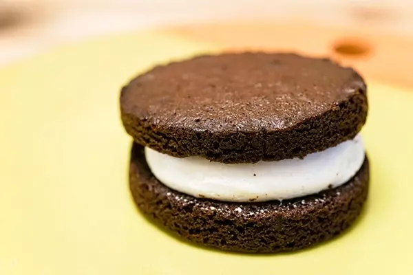 最近では、キャンプやバーベキューの際にマシュマロを焼き、ビスケットやクッキー、クラッカーなどではさんだ「スモア」がちょっとしたブームになりましたよね。「ブラウニーケーキ(マシュマロクリーム)」は、マシュマロを焼いているわけではありませんが、イメージ的には、その「スモア」に似ているかもしれません。