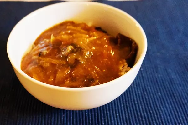 …しょう油ベースの甘辛さは日本人の舌に合うのか、違和感なく「おいしい」と感じた一品。ただ、ちょっぴり味は濃いめな印象。パッケージほどボリューム感もなかったのが残念。