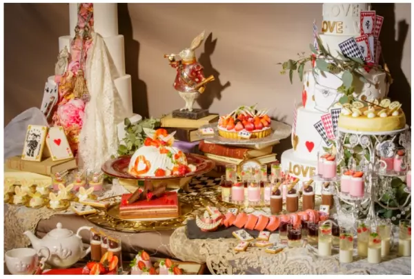 ウエディングパティシエによる特製スイーツが勢ぞろい今回開催される「アリス・イン・ストロベリーランド」は「不思議の国のアリス」をイメージしたデザートブッフェです。