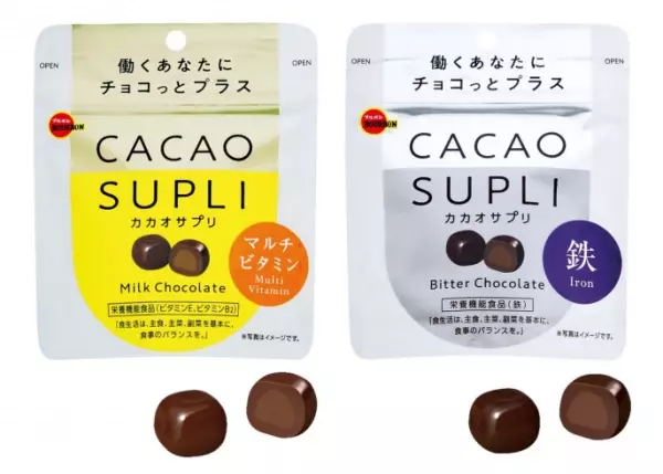 美味しく食べて栄養補給今回発売されるのは「カカオサプリマルチビタミン」と「カカオサプリ鉄」の2種類。「カカオサプリマルチビタミン」には、ビタミンA、ビタミンB群、ビタミンC、ビタミンEなど、11種類もの豊富なビタミンが入っています。